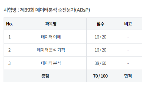 2023.11.10 일자로 ADsP 39회 사전발표일이었는데, 프로젝트로 바빠서 정신이 없었다..