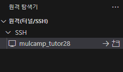 VS code를 열어놓고, 원격 탐색기를 열어 ssh를 설정해야한다.