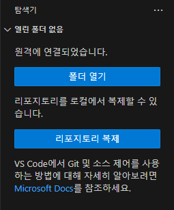 새창에서 열었을 때, 탐색기에 원격에 연결되었다며 폴더를 열어달라는 메세지가 뜬다.