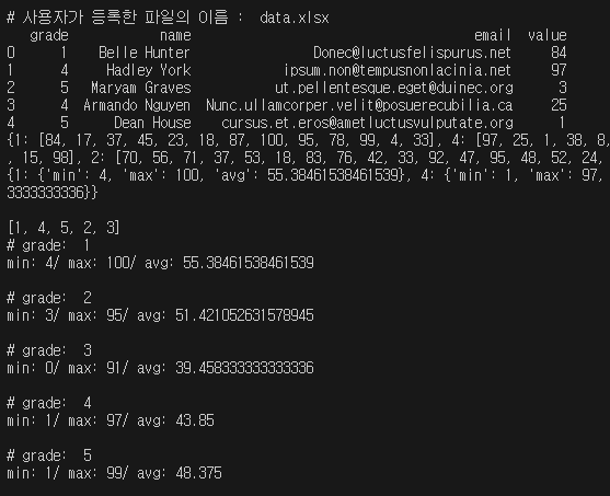 print("/ avg:", grade_calculate_dic[key]['avg'], end="\n\n")