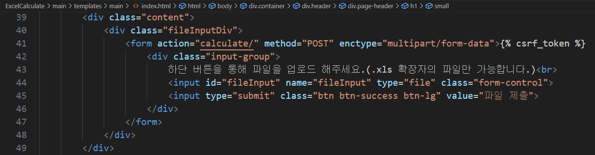 <form action="calculate/" method="POST" enctype="multipart/form-data">{% csrf_token %}