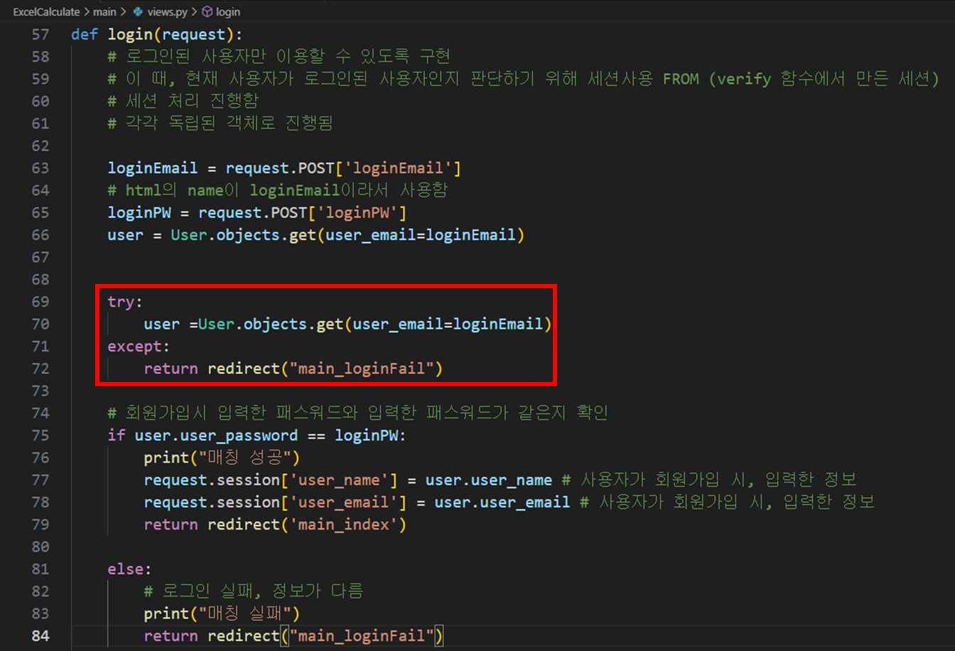 request.session['user_email'] = user.user_email # 사용자가 회원가입 시, 입력한 정보