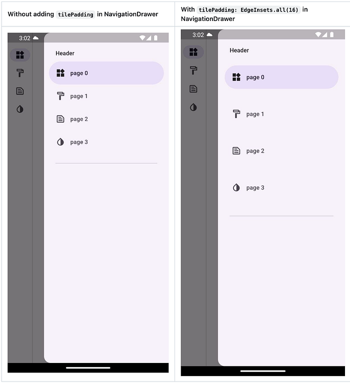 그리고 스위치의 trackOutlineWidth 조정과, NavigationDrawer의 TilePadding 속성이 함께 부수적으로 추가되었다.