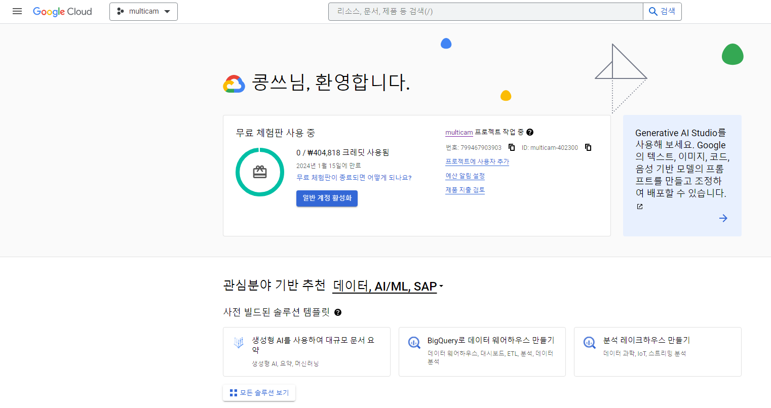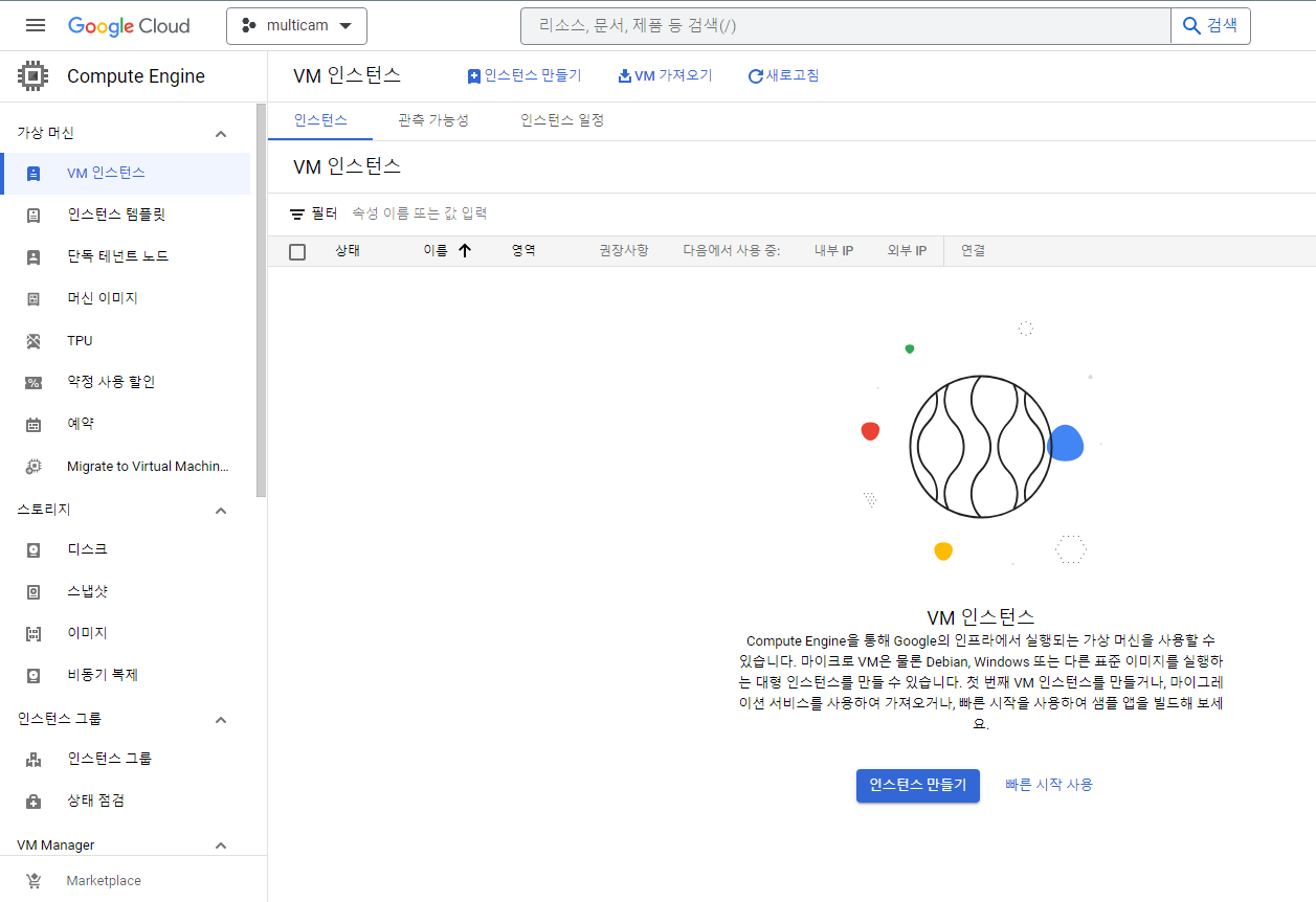 오늘 시작은 구글 클라우드 첫화면이 켜져있는 상태라고 가정하고 시작한다.