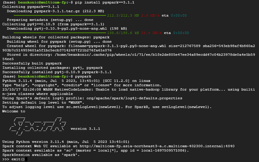 pip install pyspark==3.1.1