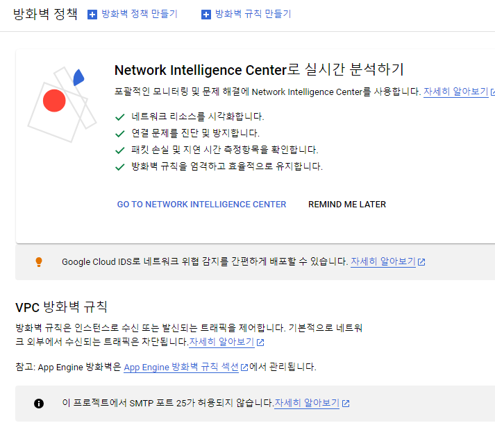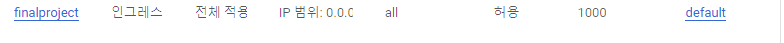 현재 방화벽 상태를 보면 VPC 설정이 된 것을 볼 수 잇다.