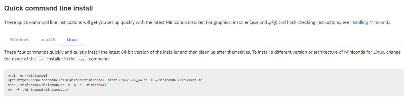 wget https://repo.anaconda.com/miniconda/Miniconda3-latest-Linux-x86_64.sh -O ~/miniconda3/miniconda.sh
