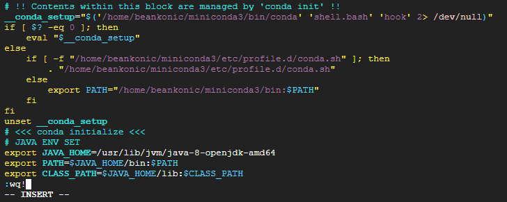 복붙이 끝났다면 esc 키를 누르고 :wq! 를 작성해주자
