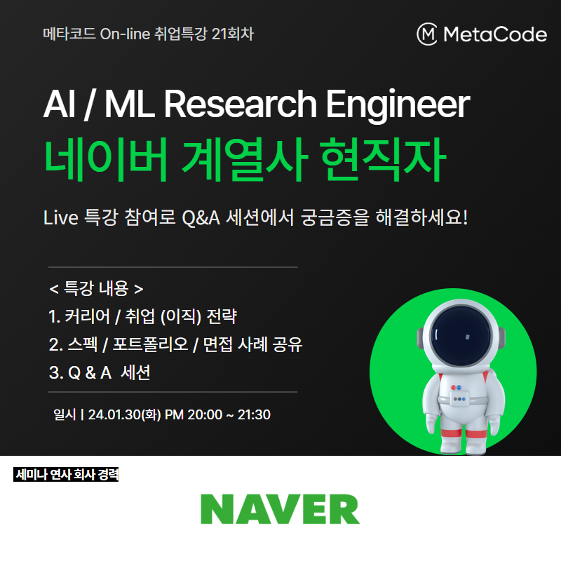 빅데이터 , AI 강의 플랫폼 & IT 현직자 모임 플랫폼ㅣ메타코드 커뮤니티 일원이 되시기 바랍니다.