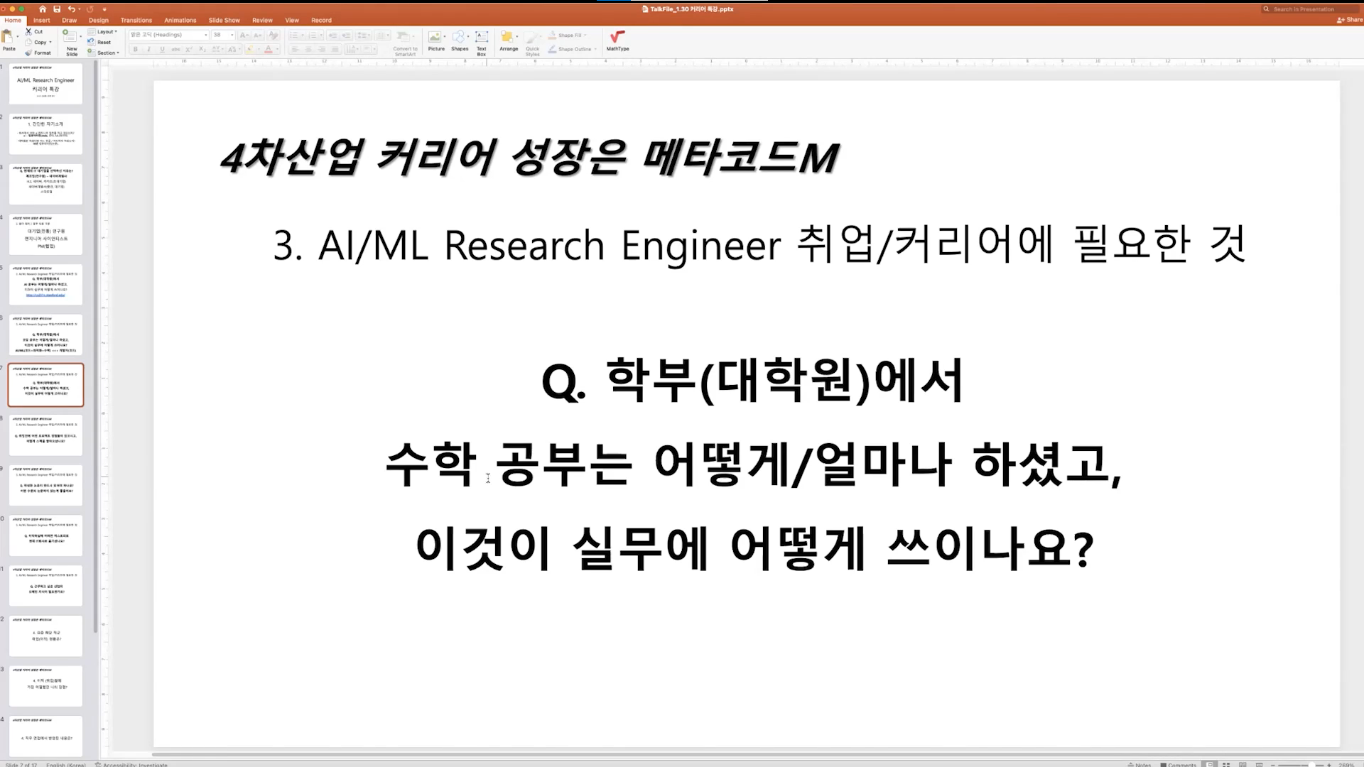 AI쪽에서는 수학이 정말로 중요한 부분이기에, 사이언티스트분들의 경우 알파의 오메가 정도고 엔지니어에게도 정말 중요한 부분이라고 하신다.