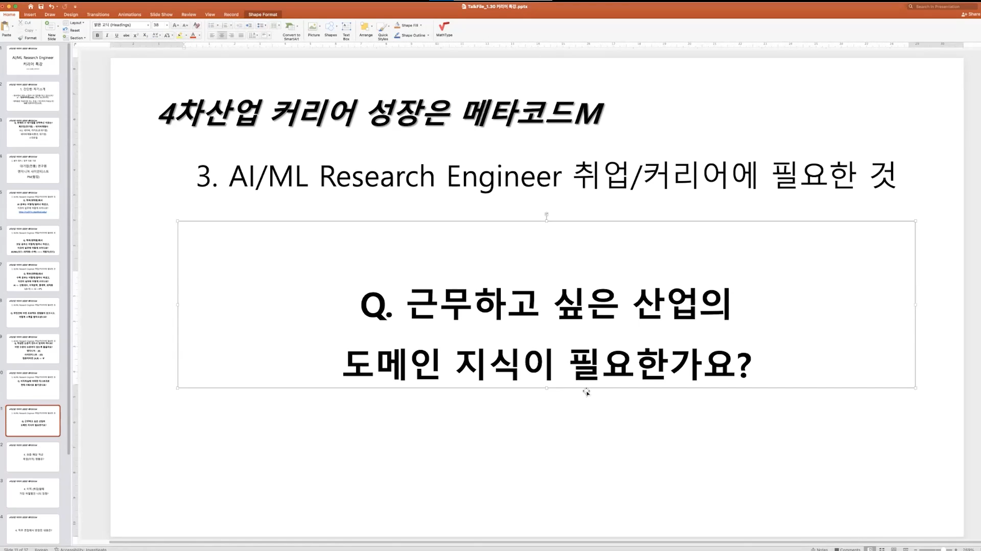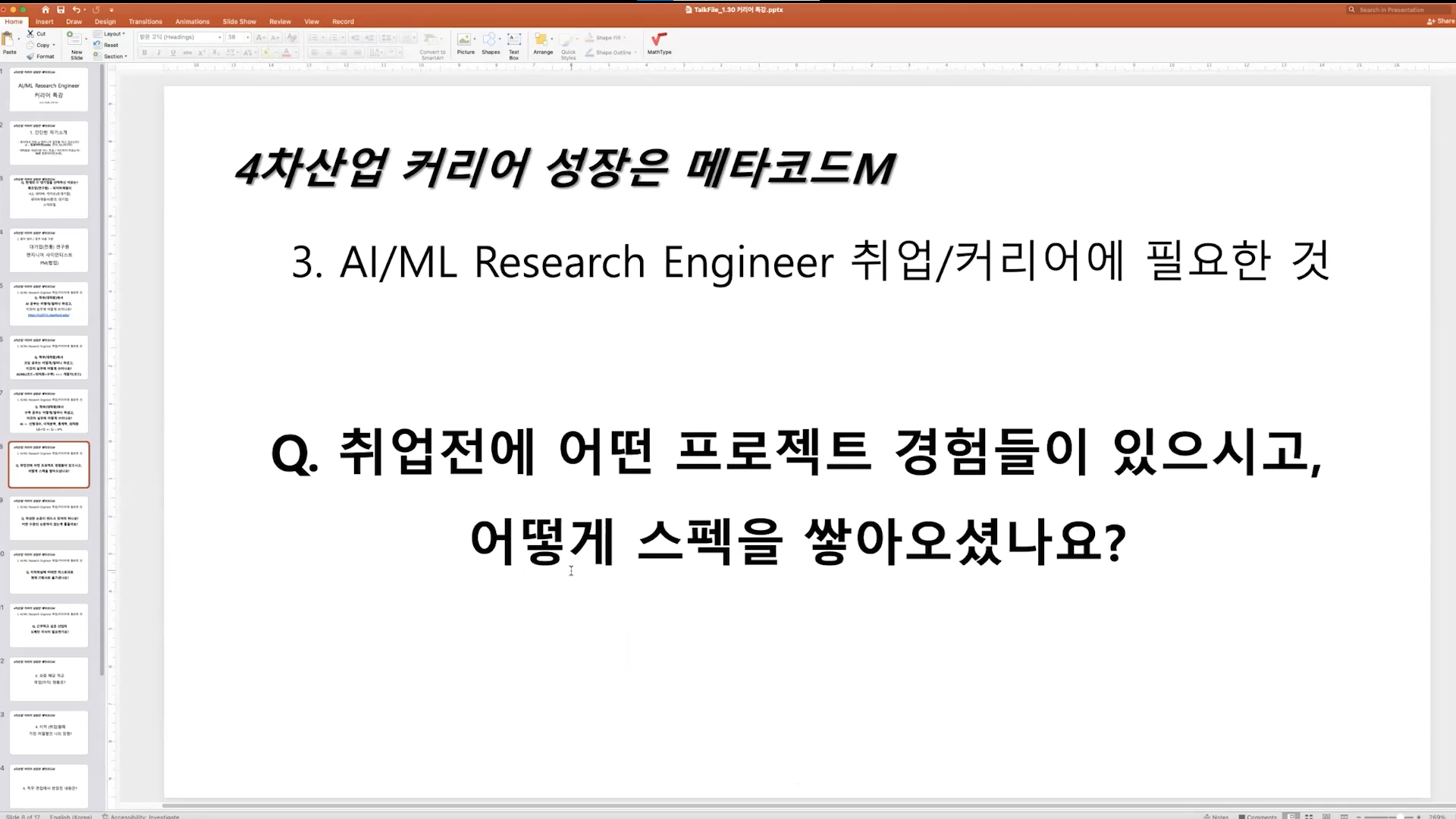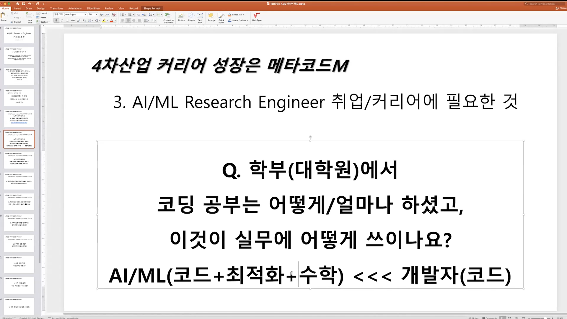 코딩 공부를 전문적으로 하고 싶거나, 코딩 공부가 정말 재밌어서 하시는 분들께는 오히려 AI, ML 쪽으로 직무가 맞지 않을 수도 있다고 하신다.