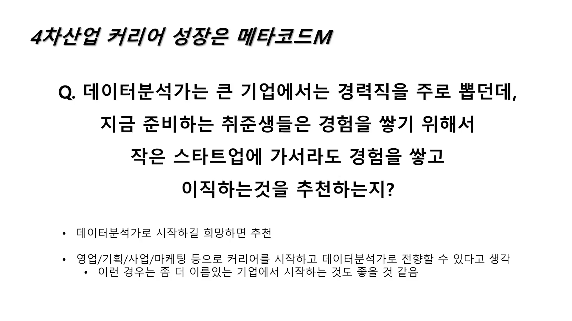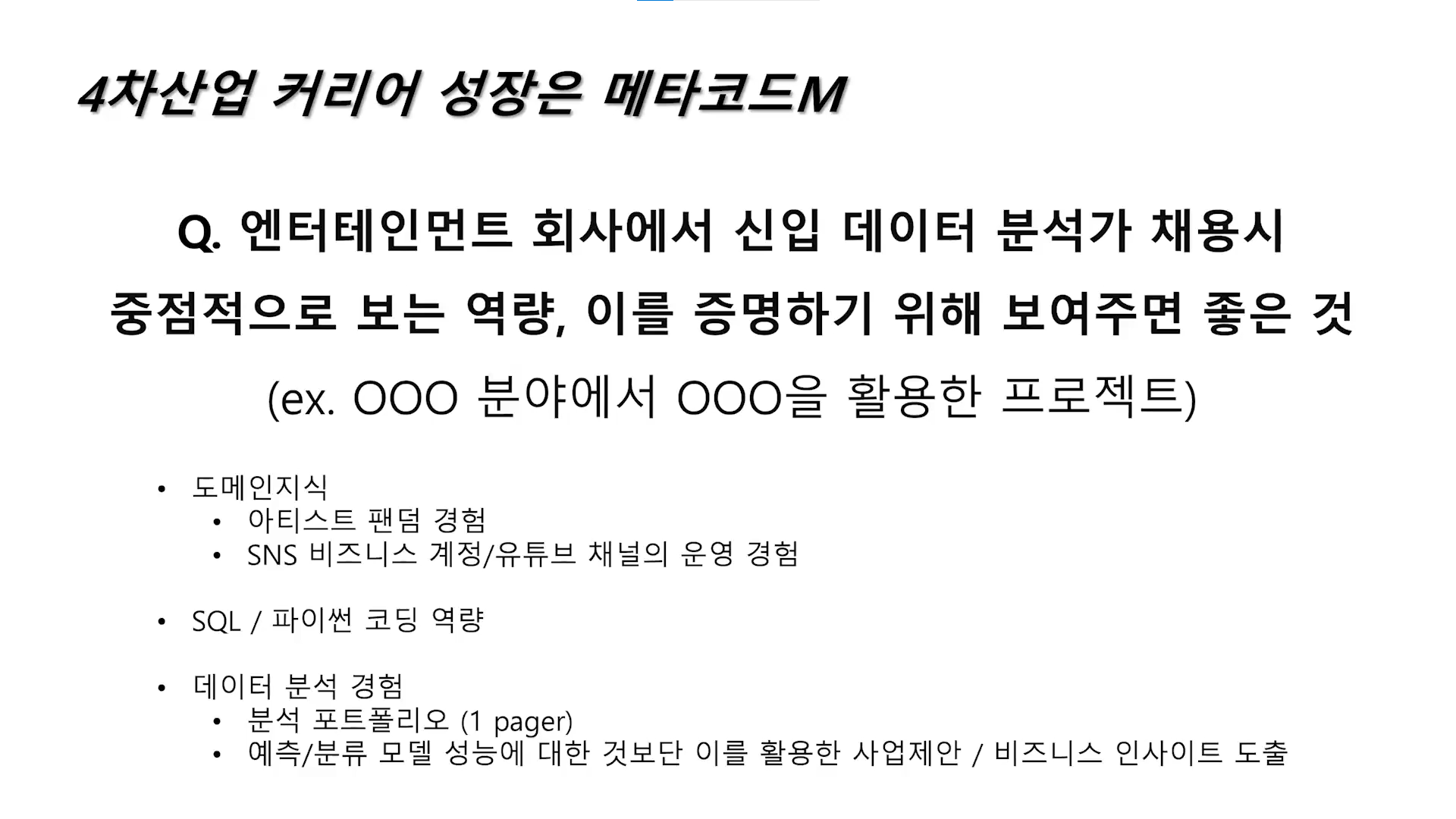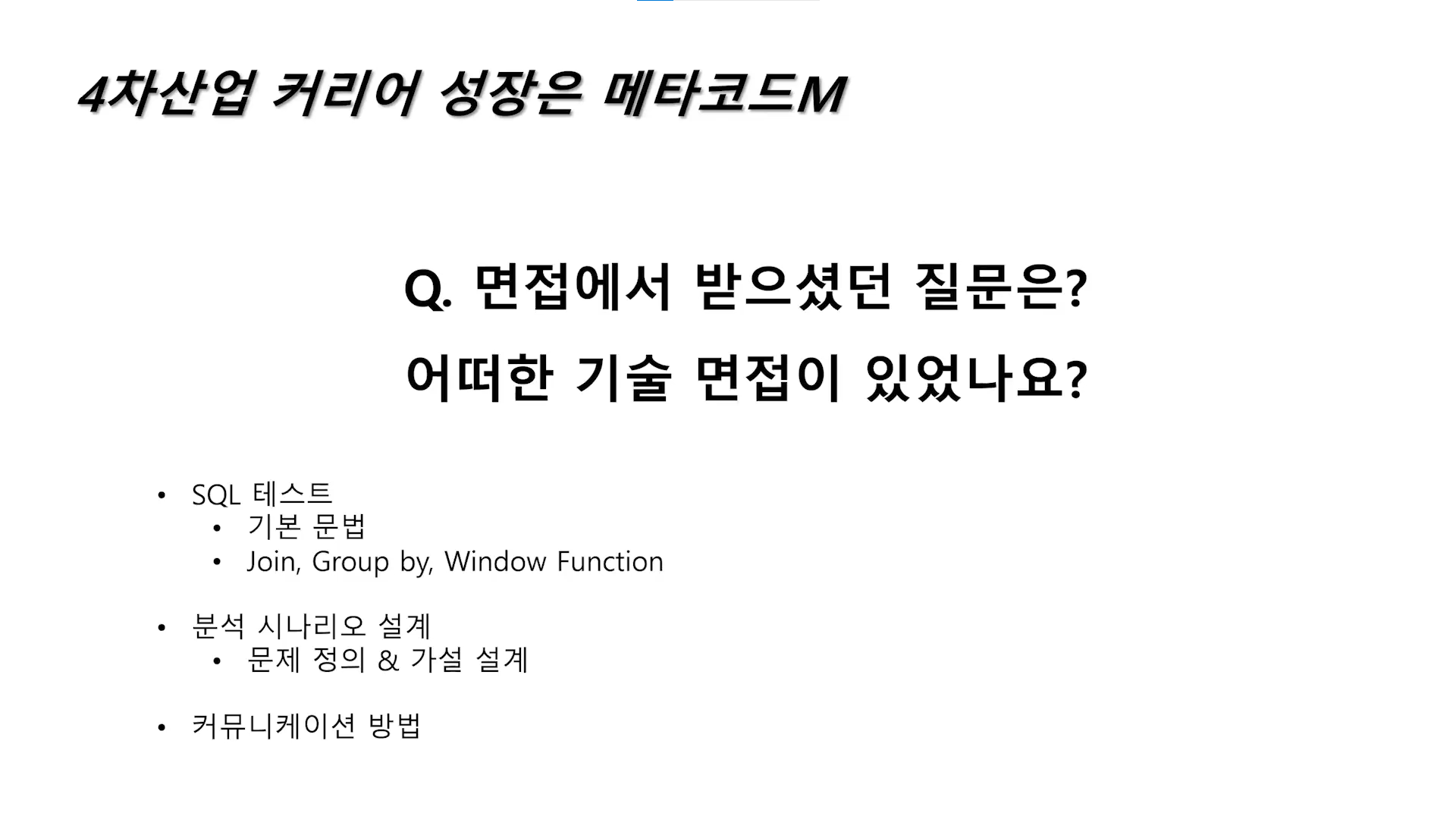 신입이던, 이직이던 SQL이나 파이썬을 활용할 수 있는 능력을 먼저 평가하는게 우선같다고 하셨다.