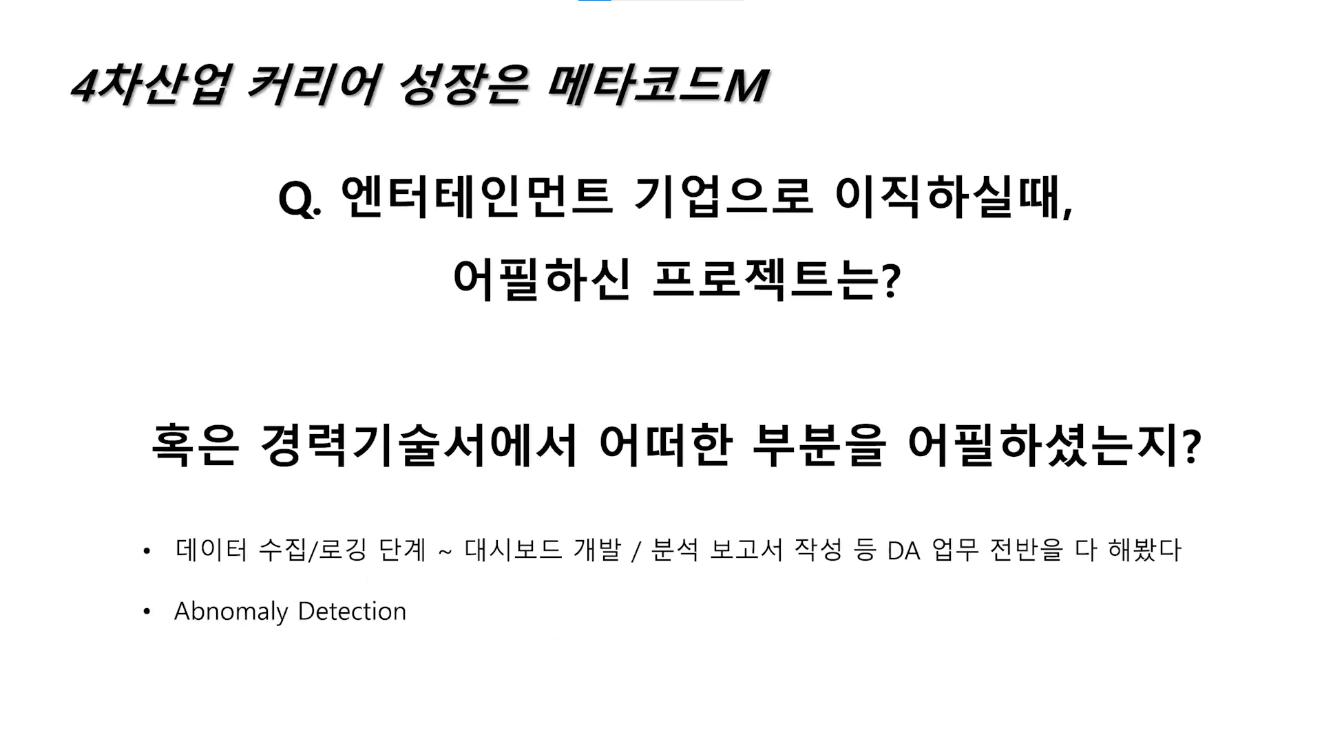 프로젝트 경험은 게임업계에서 했던 Abnomaly Detection 경험으로 튀는 것들을 미리 사전에 체크하는? 그런 경험인 것 같았다.