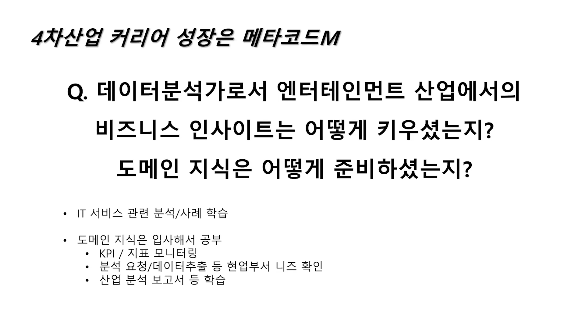 즉, 회사에서 어떤 사업을 하는지 이해하고 있으며, 분석가들이 어떤 업무를 수행하는지에 대한 질문을 하는 것이라 한다.