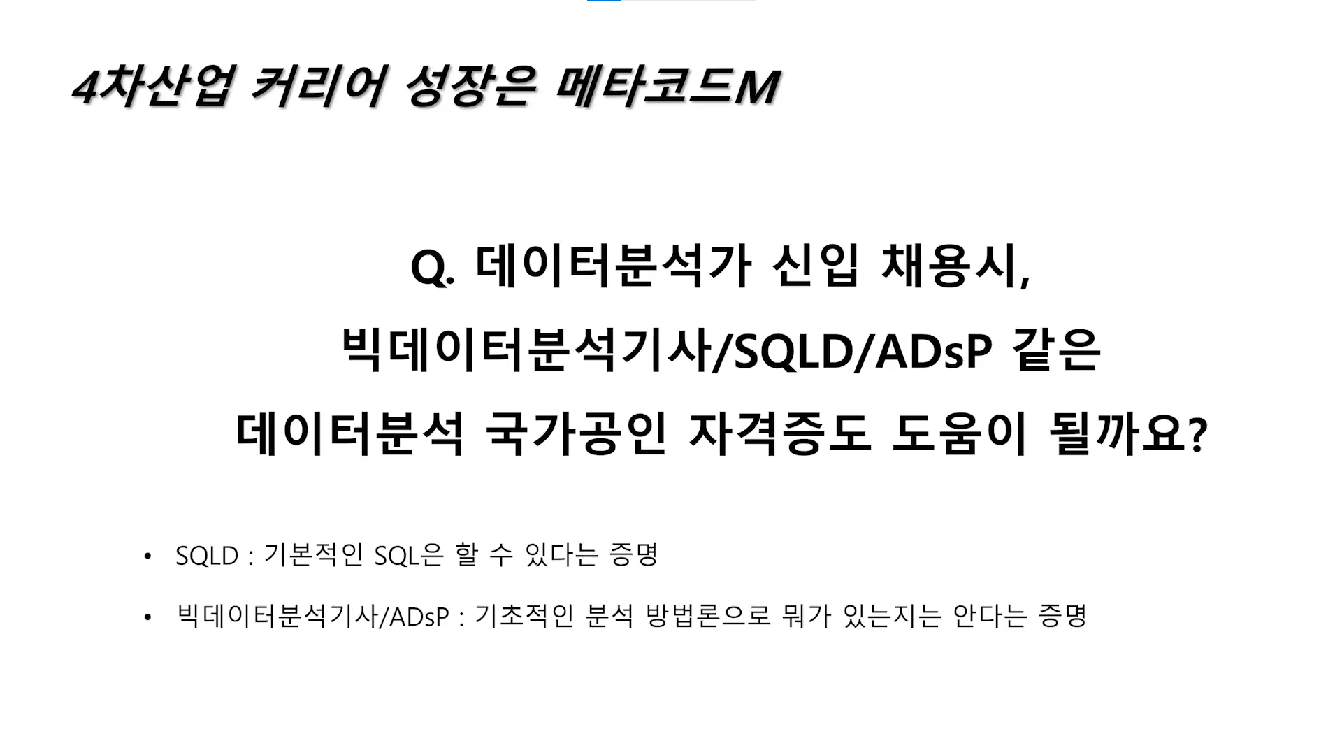 담당자가 해당 자격증에 대해 알고 있었으며, 분석 방법론에 대해 이해하고 있겠구나 하는 생각을 가지게 된다고 한다.