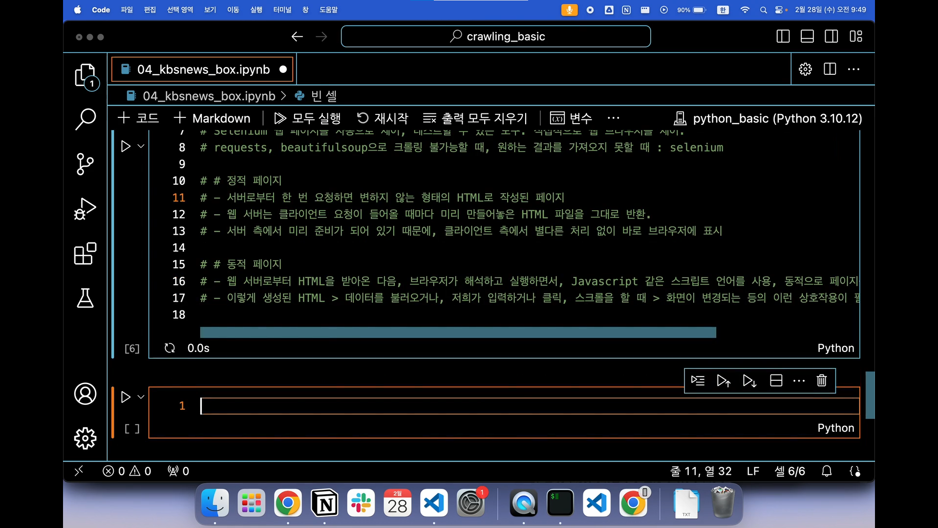 [크롤링] 웹 크롤링 kbs 뉴스 데이터로 직접 해보자! (Selenium 활용) + Trouble Shooting (1) | 2024.03.11 |