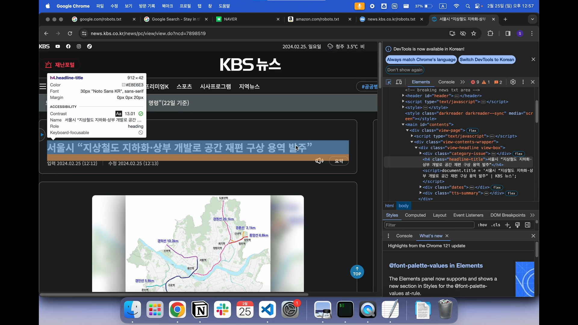 그리고 다음 기사를 눌러서 같은 과정을 반복해주는데, 이 때 title이나 body의 class가 동일한 것을 알 수 있다.