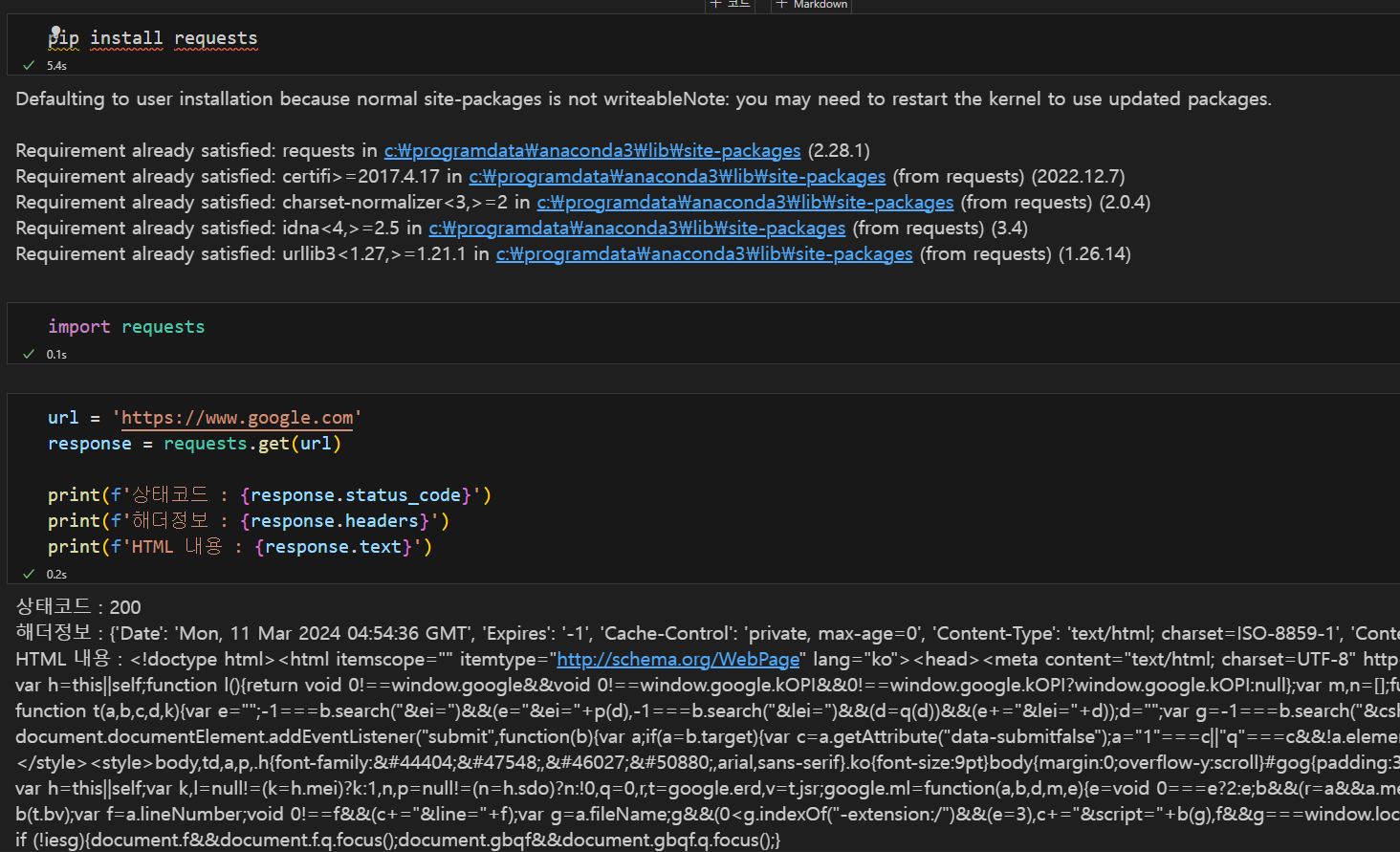 기본 코드를 통해 구글 홈페이지 크롤링 해오기
