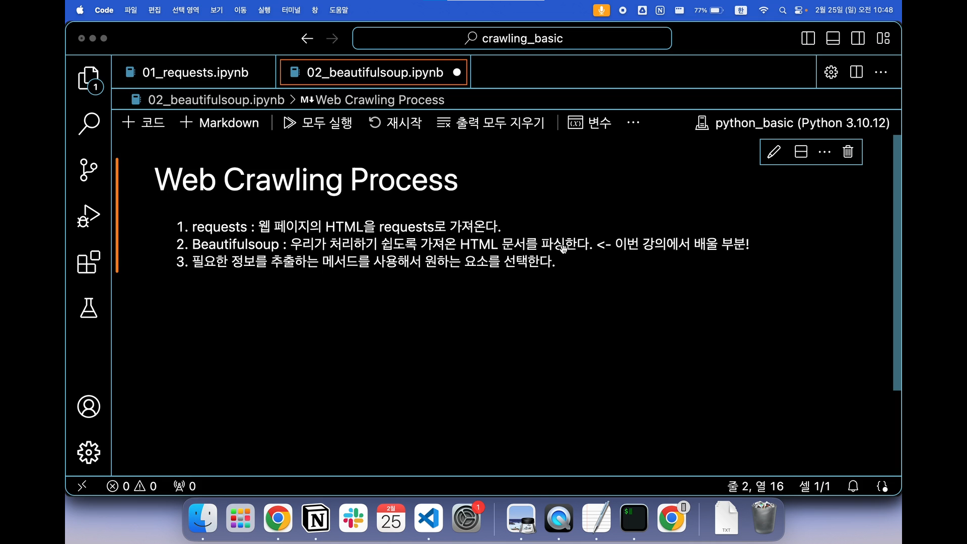 근데 강사님은 VS code를 사용하시지만, 주피터 환경으로 파일을 생성해서 하셔서 약간 의아했다.