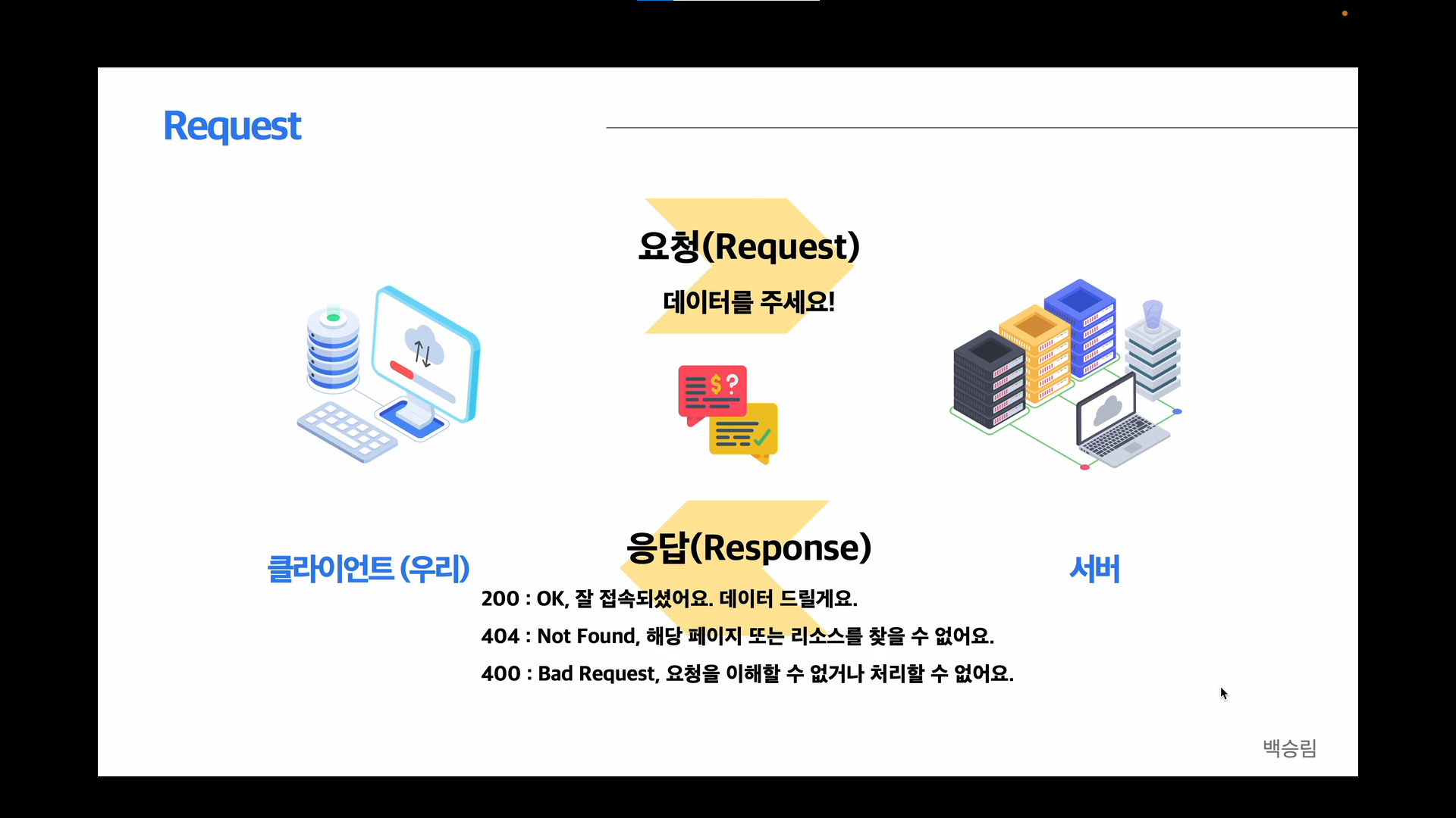 우리가 코드를 통해 서버에 요청을 보내게 되는데 이때 이 요청을 서버에서 정확히 파악할 수 있고, 접속이 잘 되었다면 응답 코드 200으로 우리가 원하던 데이터를 받을 수 있다.