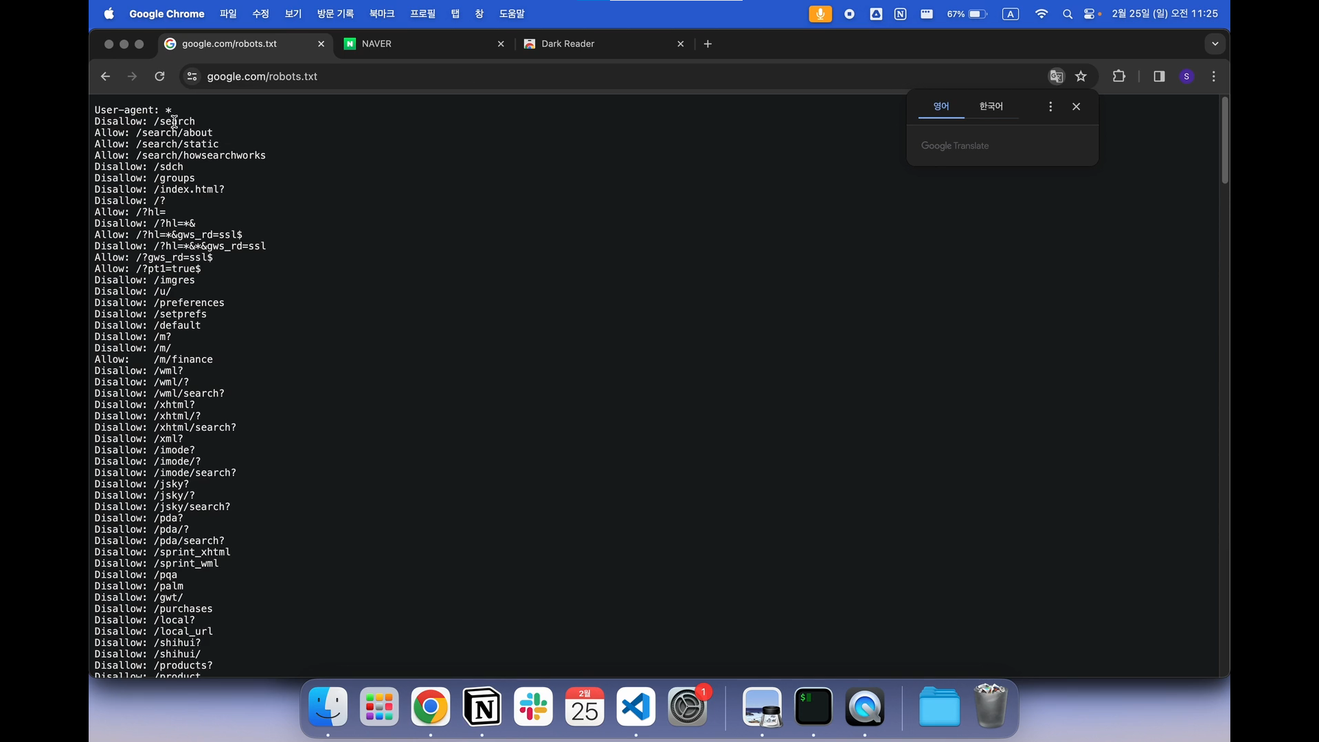 앞전의 사진의 경우 구글 사이트의 크롤링 허용 범위를 살펴봤다.