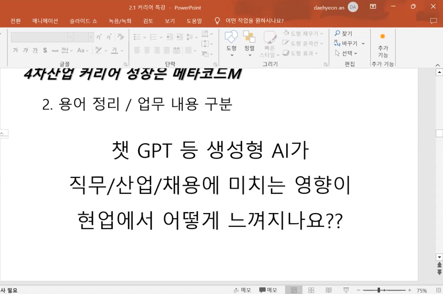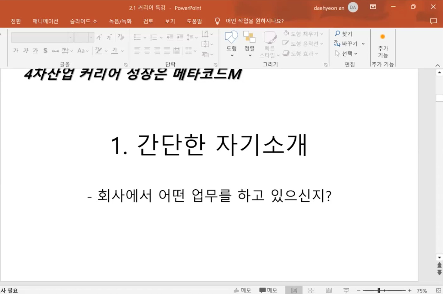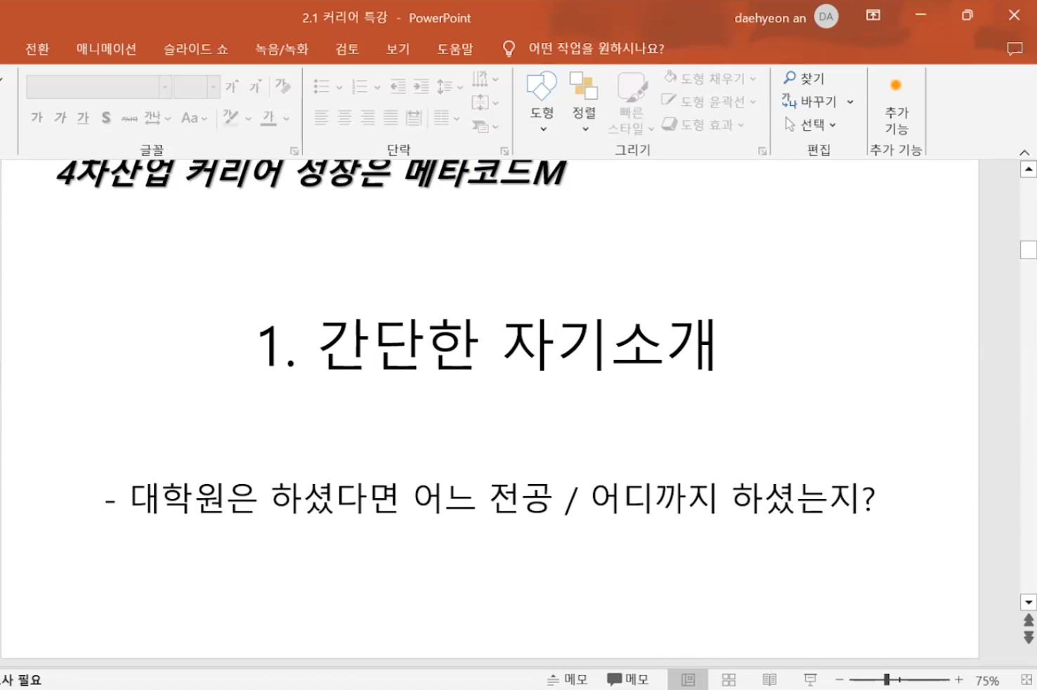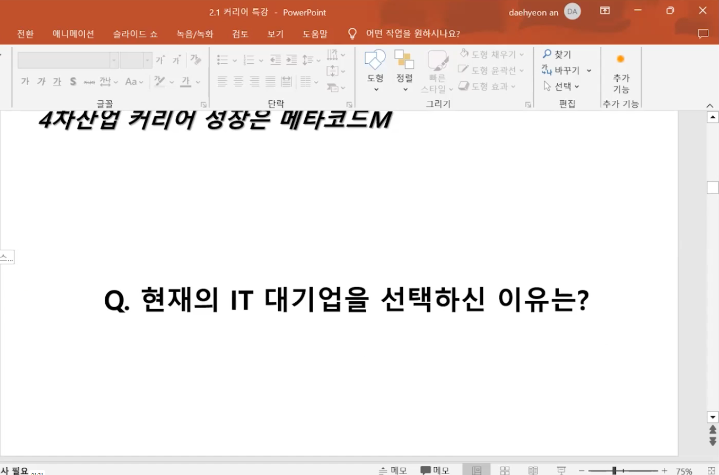 이 질문은 이전에 다른 취업 특강에서도 있었던 질문이었는데 또 사전 질문으로 들어온 것 같았다.