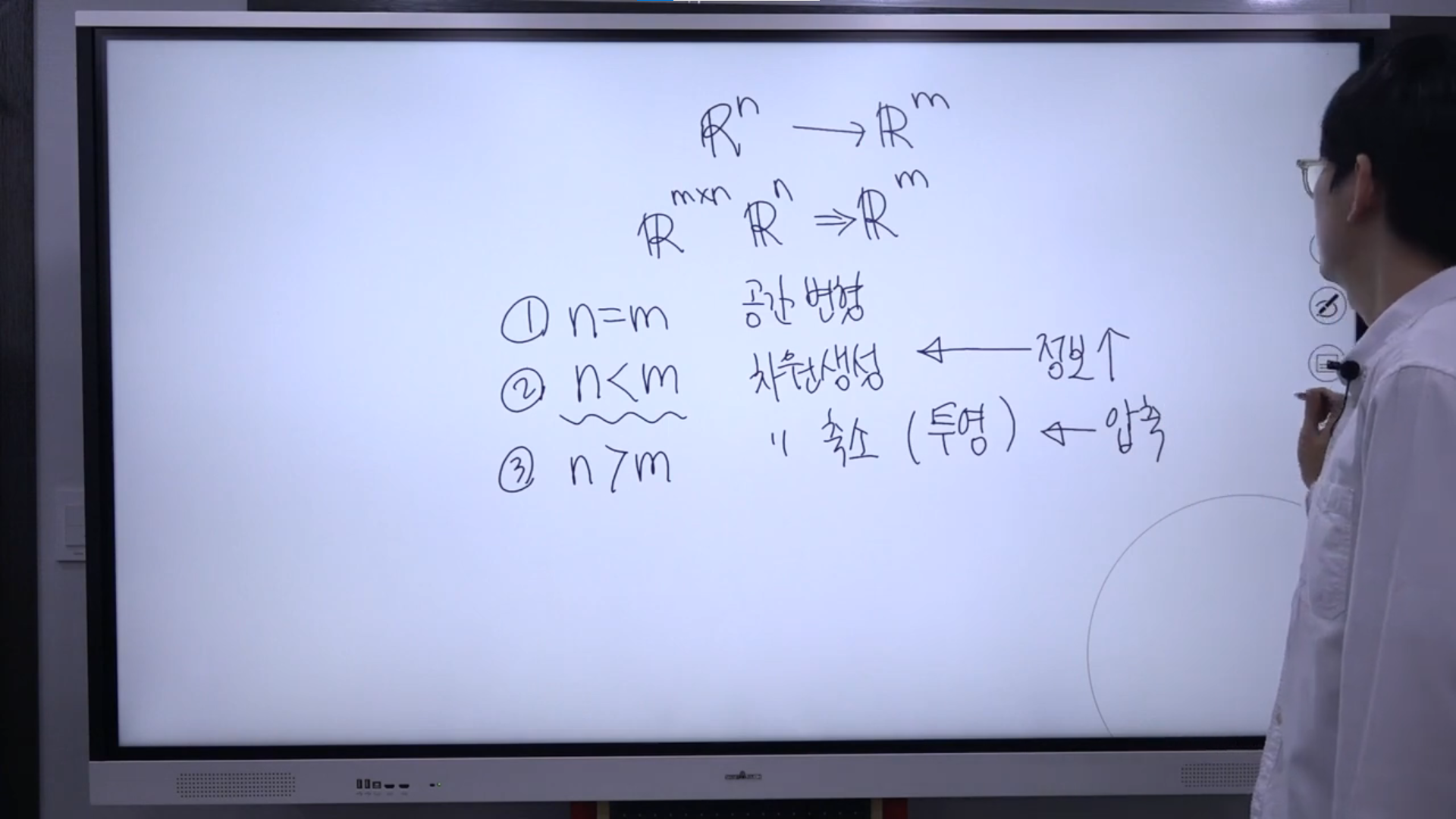 벡터의 크기가 차원의 수보다 작을경우에는 차원을 눌러서 정보를 압축하는 역할을 한다.