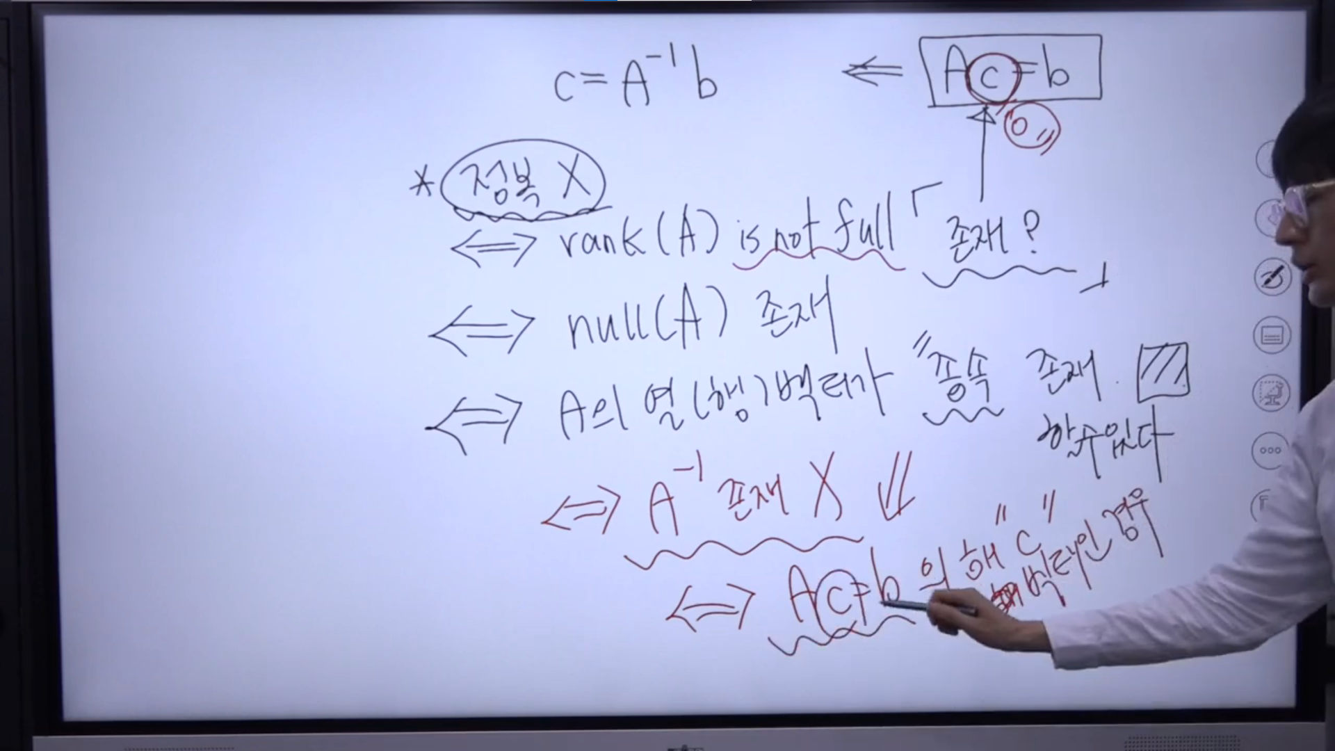 Ac = b 일때, c를 구하고 싶으면 A의 역행렬을 곱해서 구하면 된다고 한다.