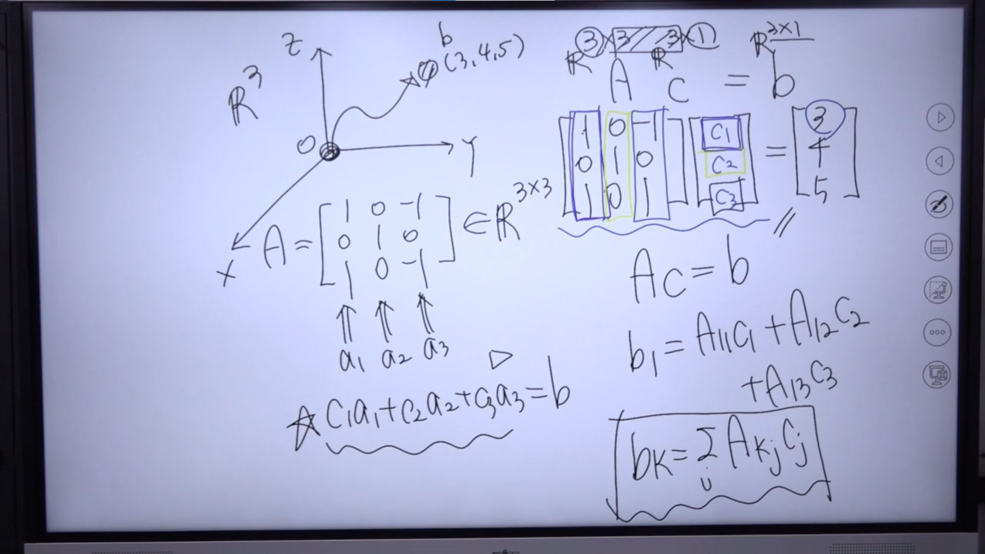 3X3 행렬에서 A에서의 각 세로 개체들을 묶어서 순서대로 본다면 a1은 첫번째, a2는 두번째, a3은 세번째 순서에 해당되기에 위의 공식으로 표현된다.