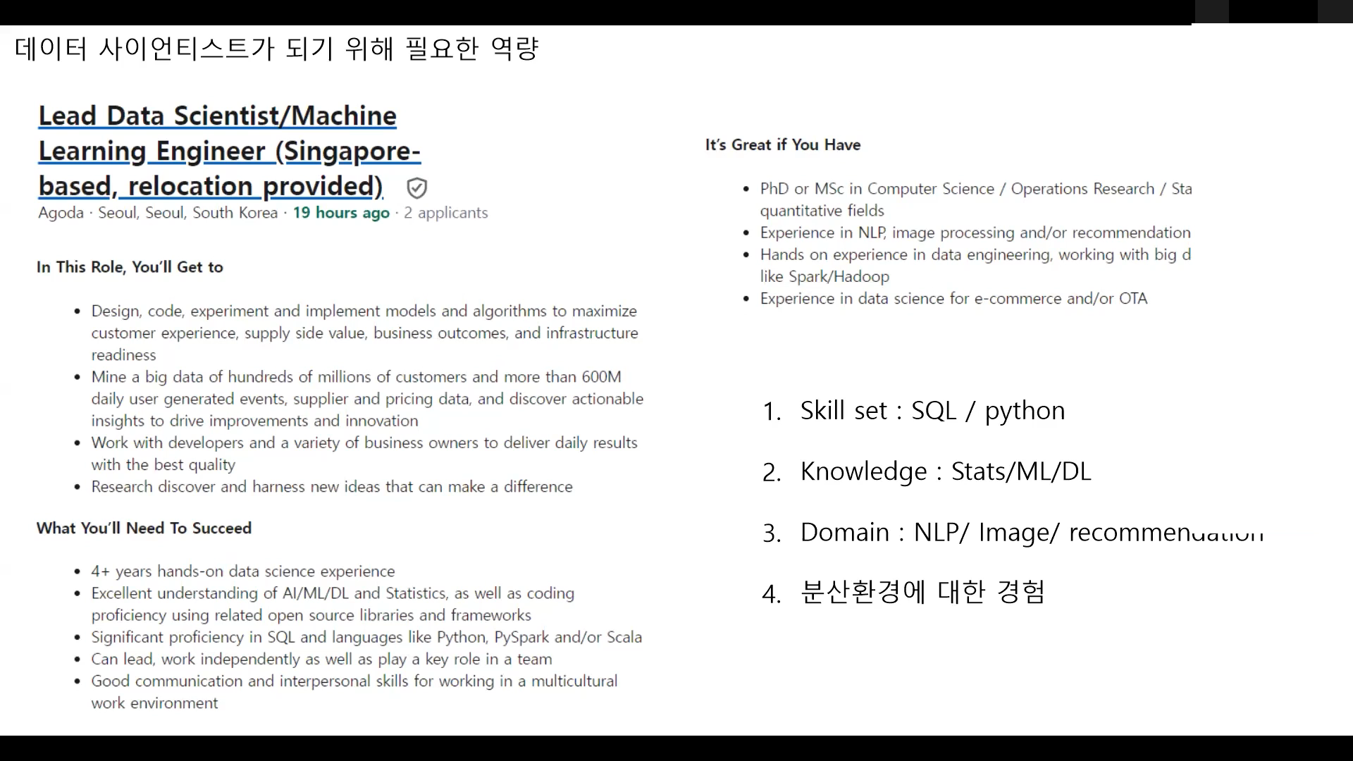 이로써 데이터 사이언티스트여도 데이터 분석가의 자질을 요구하는 곳도 있다는 것을 확인할 수 있다.