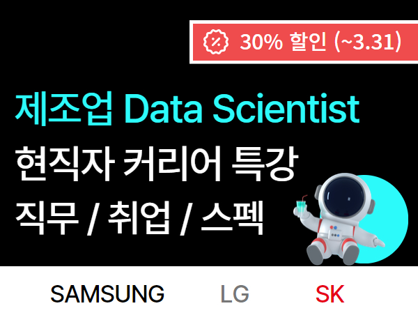 | [취업특강] 국내 4대 엔터테인먼트 데이터분석가 커리어 특강 후기 (3) | 2024.03.01 |