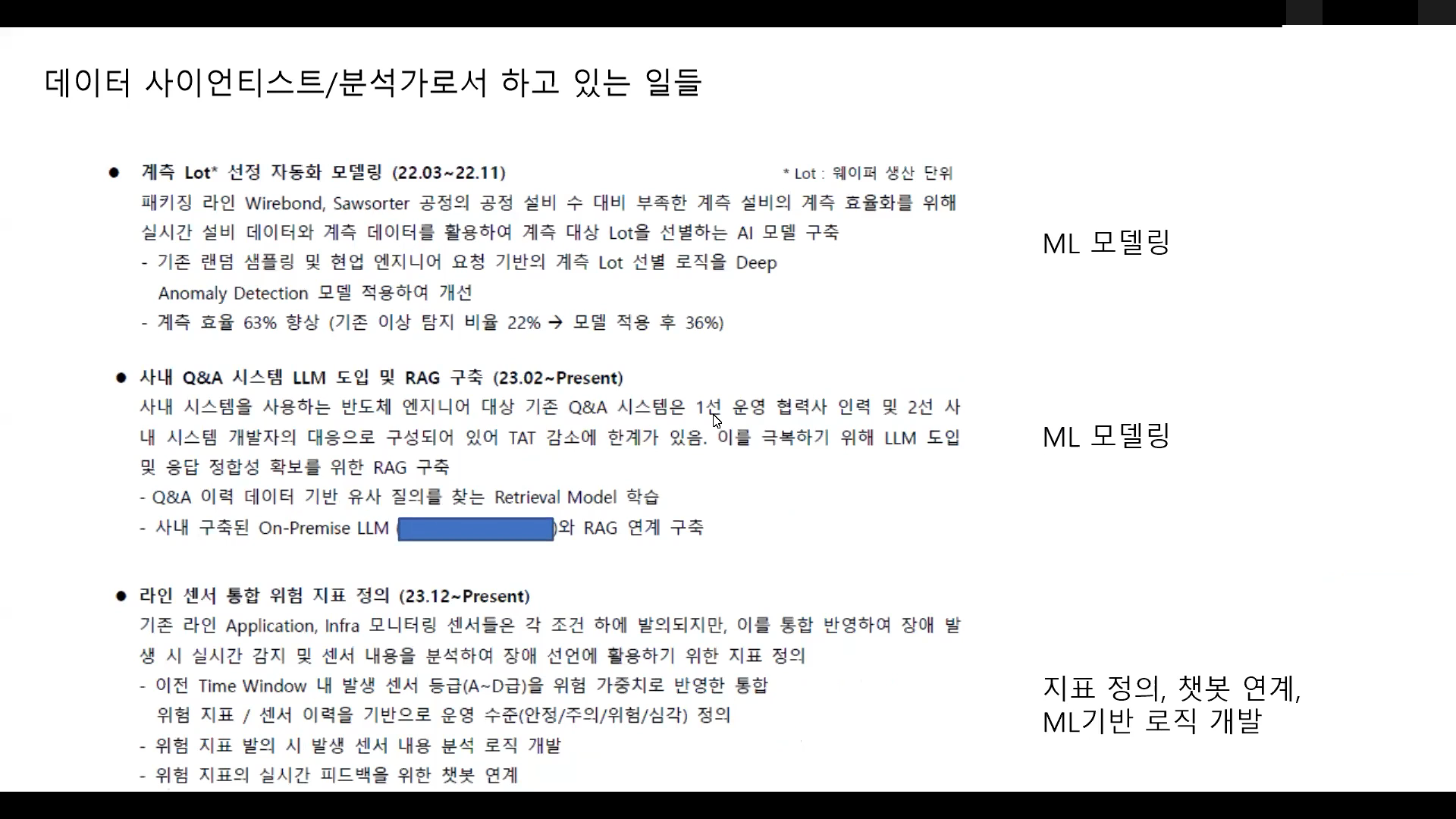 현재는 생산라인 데이터를 활용하는 직무를 수행하고 계신다고 하셨다.
