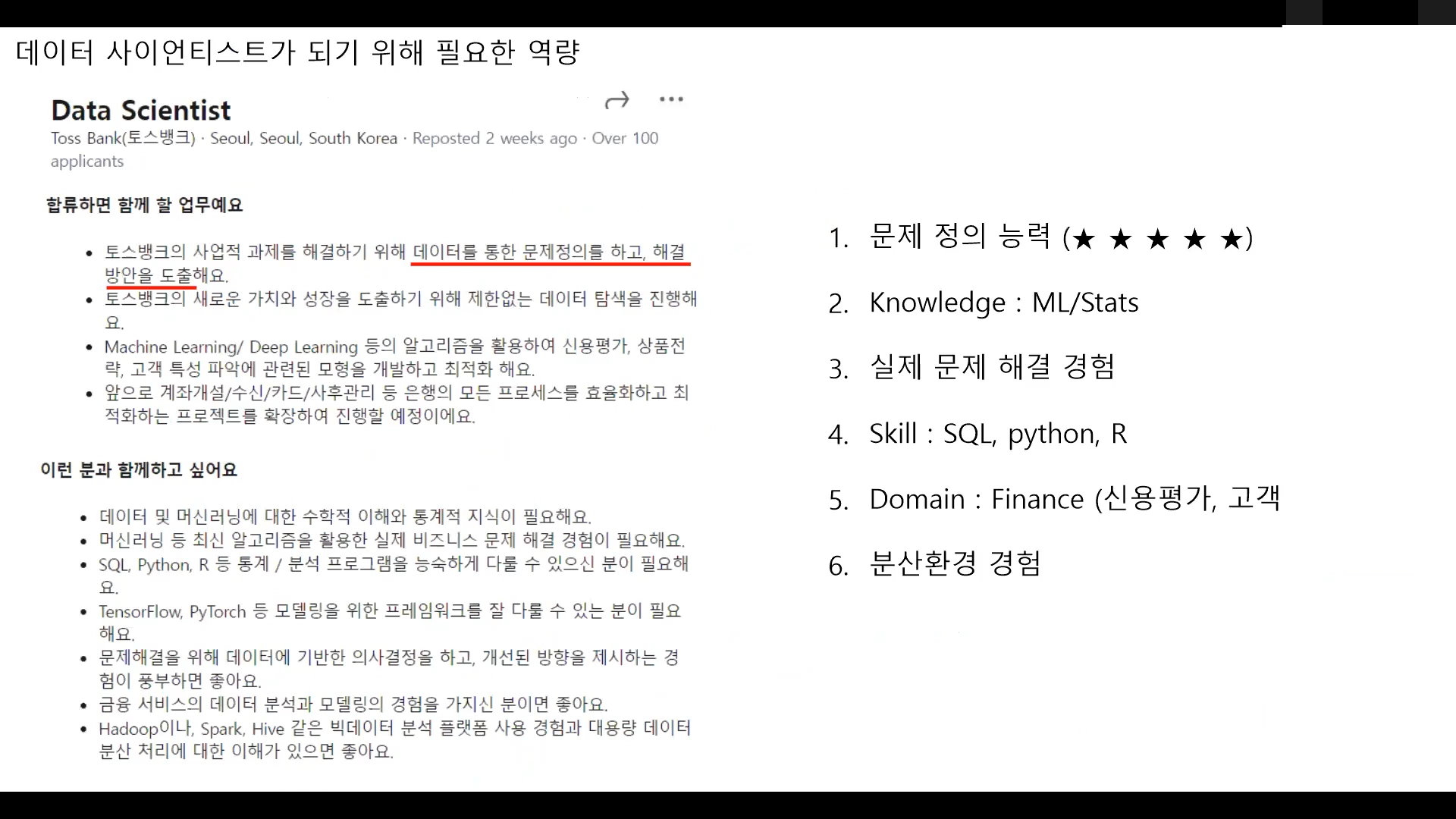 현재 실제로 채용공고로 올라온 토스의 데이터 사이언티스트 직무에 대해 이야기를 해보는 시간을 가졌다.