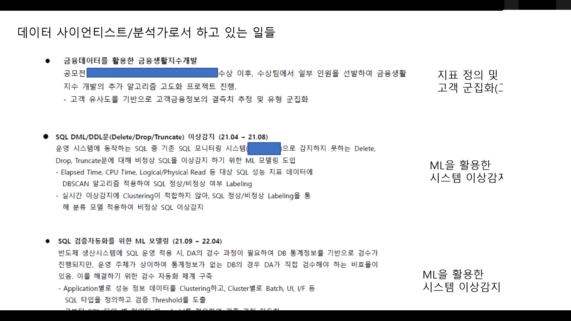 주로 시스템 자동화나 이상감지에 대한 부분을 머신러닝 기반으로 담당하고 계시는 것 같다.