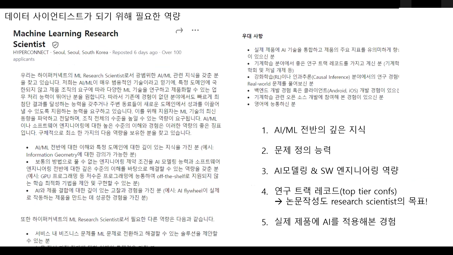 이 공고는 머신러닝 리서치 사이언티스트를 채용하고 있다.
