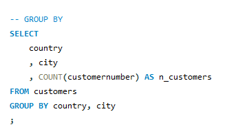 GROUP BY : 그룹화 (보통은 따로 작성함.)