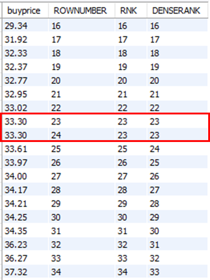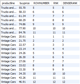 , DENSE_RANK() OVER(ORDER BY buyprice) DENSERANK