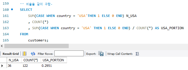 그리고 좀 더 응용해서 위의 값에 대한 비율을 구해보면,