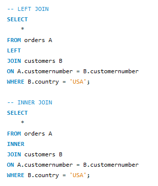 LEFT JOIN customers B ON A.customernumber = B.customernumber