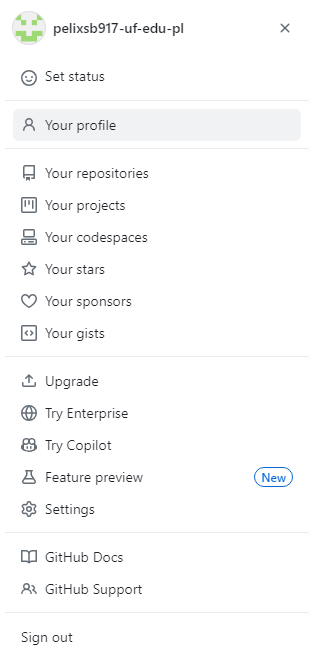 우측 상단의 메뉴를 눌러 your profile을 클릭하고 내 계정의 메인 페이지로 이동한다.