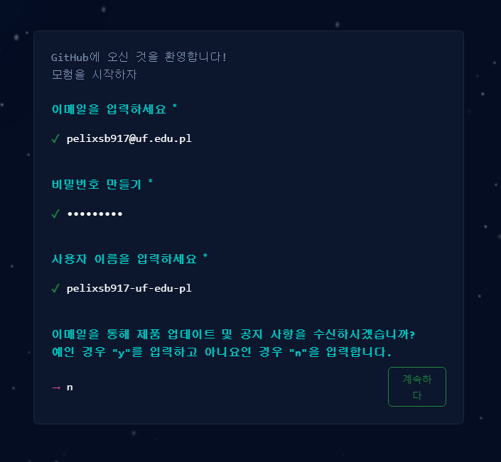 나는 가상 이메일을 이용해 깃허브를 가입했다.